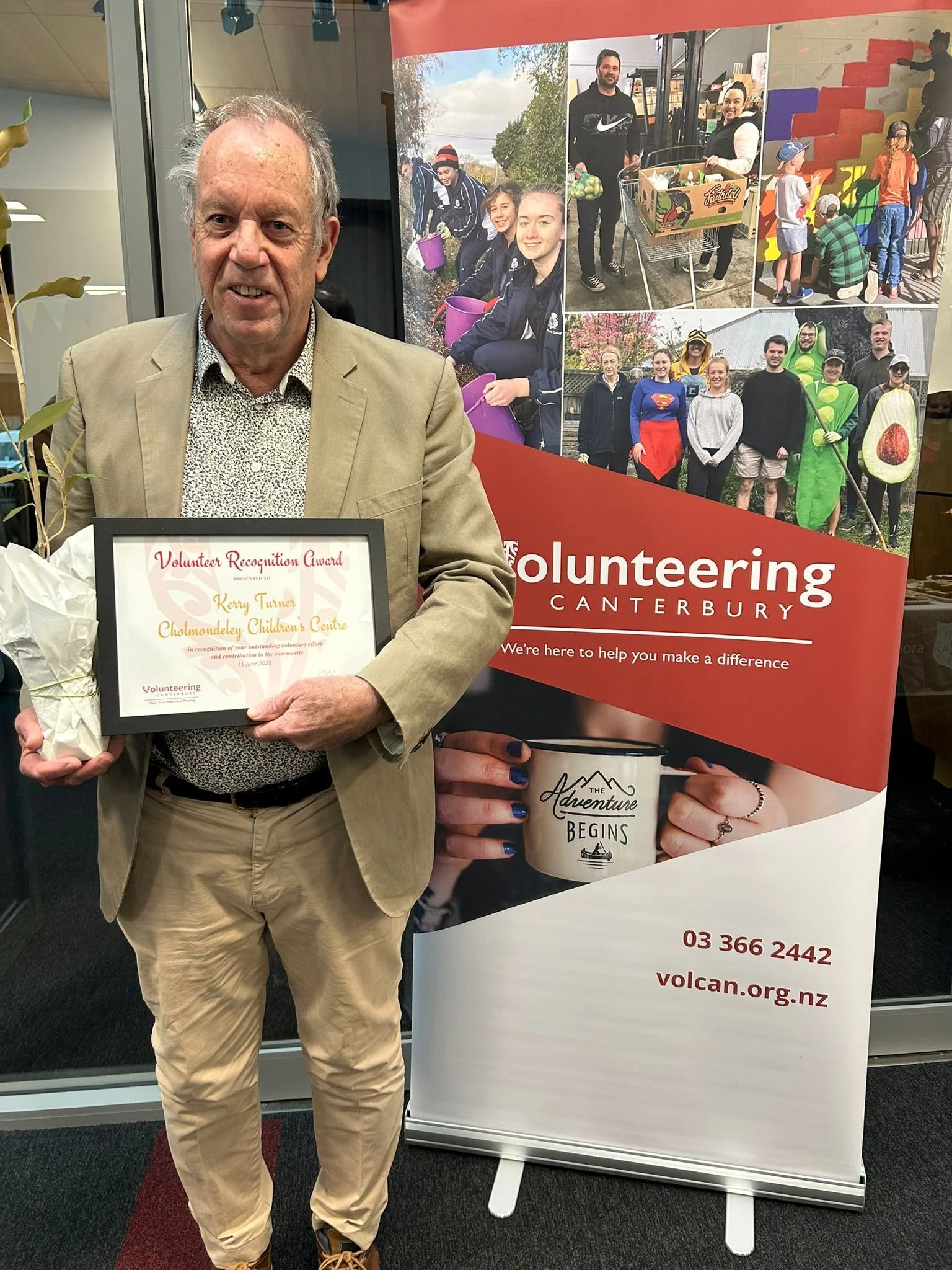 This month we have been celebrating National Volunteer Week. Kerry Turner received an award at the Volunteer Canterbury Recognition Awards. Kerry has been such a great support to the centre, this year alone he has helped build the Gaga Pit and our new centenary garden. We are so lucky to have the support of so many volunteers who do much wonderful things from reading with the tamariki to therapy dog visits, fundraising and gardening. We are so grateful to every one of you and we couldn’t do it without you.